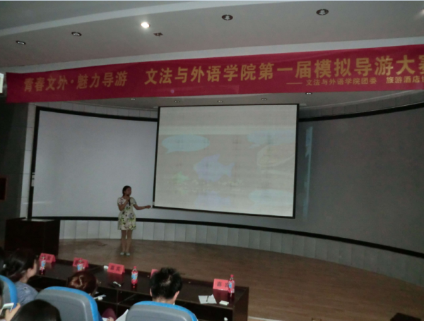 大赛的最后是各位评委的精彩点评,文法与外语学院党总支汪庆书记总结道:“这个比赛十分有意义,每个系都应该有这样具有专业性质的比赛,希望大家能利用这次模拟导游大赛这个跳板,结合专业知识与实践,提高自身综合素质,走出学校,走向全省,走向更大的舞台。”(完)