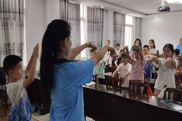 团委网7月18日消息(通讯员 刘梓衡 报道)7月17日,景阳镇革塘坝社区“爱心托管班”的教室里,20余名孩子正跟着武昌理工学院第十九届“大手牵小手”星火传薪恩施助学志愿服务队的王子怡老师,一招一式地练习太极拳。拳脚起落间,传统文化的韵味与少年的朝气在山间交织,为这个暑期注入了别样的活力。