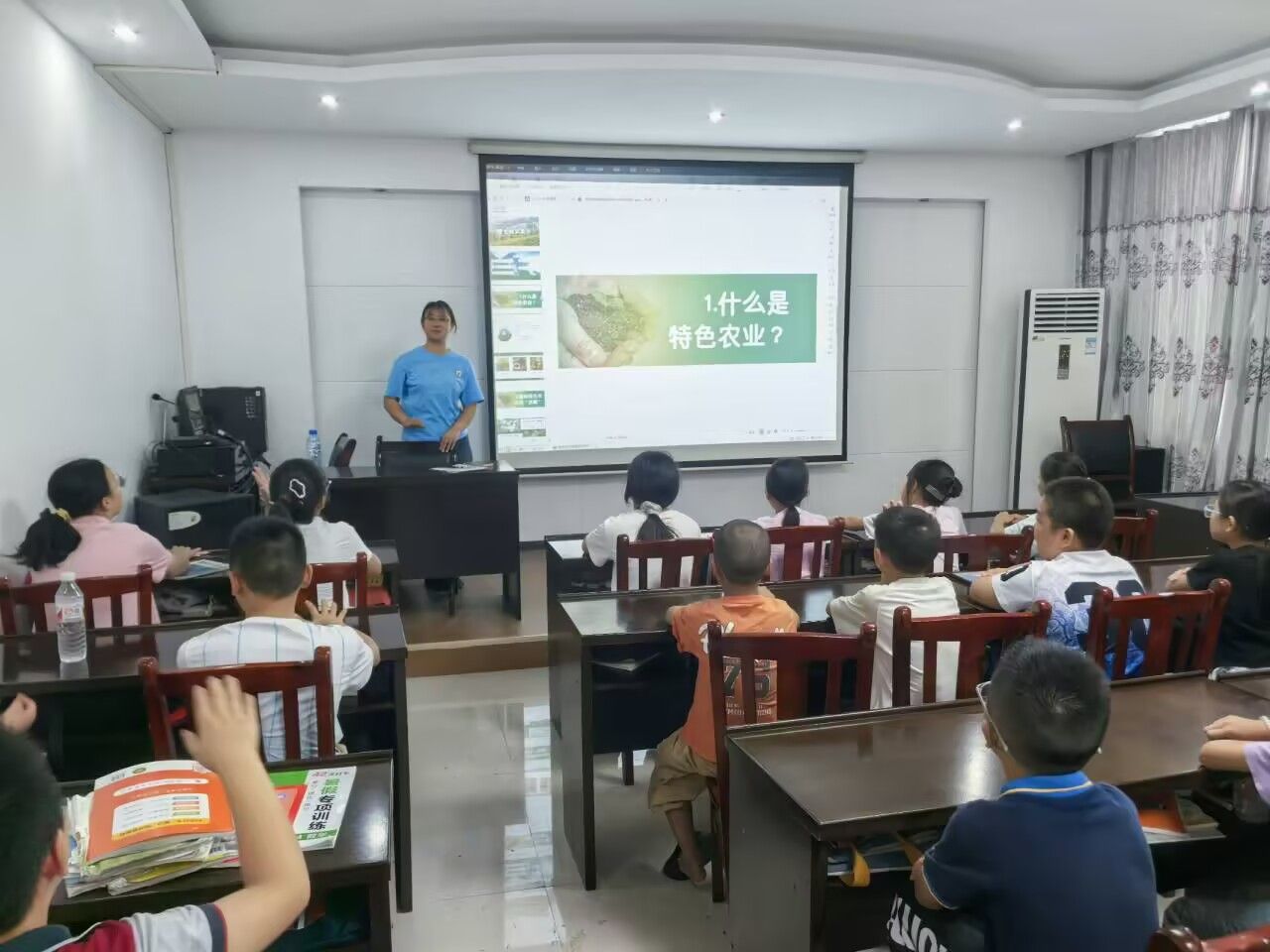 本次课程由志愿服务队李赵灿老师主讲,以“认识家乡特色农业,感知农耕智慧科技”为主线,巧妙融合知识讲解、图片展示等互动游戏。课程伊始,李赵灿老师以“什么是特色农业?”的趣味提问切入,讲述其具有“独特性、高品质、有文化”的特点,成功点燃了学生们的求知欲。紧接着,课堂镜头聚焦建始本土的特色农产品:从“树上天然糖果”——建始甜柿到“健康食材之王”——建始魔芋;从“高山宝石”——关山葡萄到“深山金凤凰”——景阳鸡。这些不仅加深了同学们对家乡特色农产品的直观感受,更一步丰富了孩子们对家乡丰饶物产的认知。