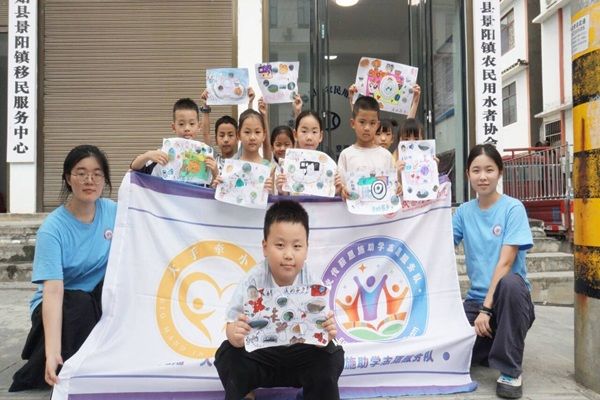 团委网7月19日消息(通讯员 余颖 报道)7月18日午后,景阳镇革塘坝社区的活动室里暖意融融。阳光洒在一张张稚嫩的笑脸上,武昌理工学院第十九届“大手牵小手”星火传薪恩施助学志愿服务队的“我的家乡”手工绘画课正在这里热情开讲。本次课程由志愿队的淡雅琪老师组织开展,她希望通过画笔与创意,让孩子们在勾勒家乡轮廓的过程中,读懂景阳镇的风土人情,在心底种下热爱家乡的种子。