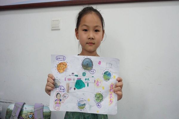“大家看,这是清江,发源于丽川,流经景阳镇,是你们的‘母亲’河哦”“然后再看看这张,这是酱香饼,是你们这的特色美食呢!”志愿队的淡雅琪老师举起一张张关于景阳镇的图片向孩子们介绍着,温柔的声音里满是对地方文化的热忱。随后,淡雅琪老师让孩子们做家乡的“小导游”,制作一份家乡小报。