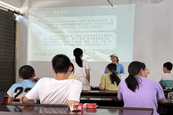 团委网7月29日消息(通讯员 阮文煊 报道)“一个作家必须有一块属于自己的精神领地。”诺贝尔文学奖得主莫言的箴言,道出了文学创作的根基所在。为了引导青少年探寻文学创作的源泉,激发对乡土文化的热爱与表达潜能,武昌理工学院第十九届“大手牵小手”星火传薪恩施助学志愿服务队于7月29日在景阳镇革塘坝社区教学点开展了一场妙趣横生的“乡村故事里的写作密码”主题课程,深度解析莫言、贾平凹、沈从文等文学大师如何从故乡沃土中汲取不朽的创作力量,为当地青少年的成长注入温暖力量。