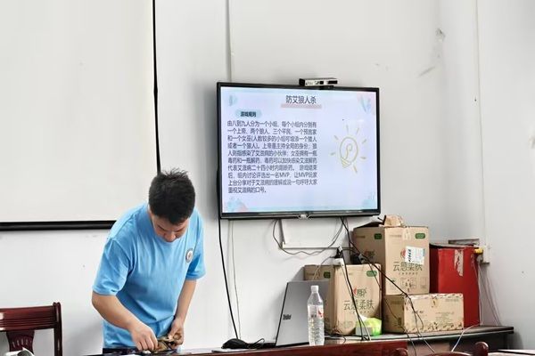随后小组讨论环节点燃了智慧火花。参与者围绕五个紧贴现实与时代脉搏的话题展开了热烈而深入的探讨,例如网络交友盛行下的潜在感染风险识别与自我保护策略等话题,如何科学应对和调节普遍存在的“恐艾”心理进行讨论。活动高潮“防艾狼人杀”游戏,这款定制游戏巧妙地将艾滋病传播机制、预防与阻断等核心知识融入紧张的角色扮演与策略推理中。游戏结束后,余老师发出“科学防护,消除歧视,共筑健康青春防线”的铿锵倡议。