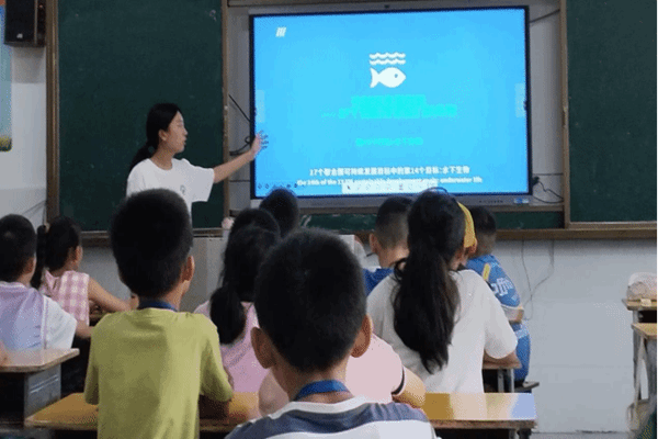 团委网7月30日消息(通讯员 叶国英 报道)为深化青少年生态环保教育,筑牢绿色发展理念根基,7月29日,武昌理工学院“暖心同行”云梦向阳志愿服务队队员孙杨声走进云梦县曙光小学爱心托管班站点二班,开展“水下生物”主题特色课程。课程通过抖音平台同步直播,以多元化教学形式推动环保知识普及,助力生态保护教育落地。