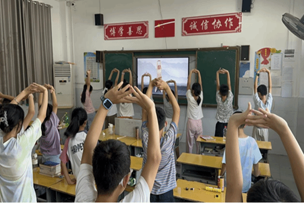 团委网7月31日消息(通讯员 胡胜燃 报道)7月31日,云梦县曙光小学暑期“爱心托管班”一班内一改往日喧嚣,数十名学生在舒缓悠扬的古乐声中缓缓舒展身体。这不是普通的体育课,而是该校将传统养生功法“八段锦”引入校园,“暖心同行”云梦向阳志愿服务队的张玉妍老师正带领学生们体验这古老健身术的魅力。