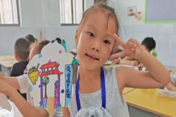“暖心同行”云梦向阳志愿服务队队员雷静怡在课程筹备阶段准备充分。雷静怡系统整理了云梦皮影纹样、楚王城遗址、泗洲寺等本土文化素材。课程伊始,雷老师以图文结合的方式向学生讲解家乡历史文化知识,示范纸扇绘画的线条运用与色彩搭配技巧,引导学生将鱼面、稻田、皮影等具有地域特色的元素转化为扇面图案。在指导过程中,她纠正学生的构图问题,同时鼓励个性化创作,重点肯定孩子们对本土文化符号的呈现。学生积极反馈作品。学生肖伊晗在展示作品时表示:“我第一次这么认真观察皮影花纹,把它画到我的扇子上之后,感觉我的扇子都有了不一样的意义!”家长何丹反映:“孩子课后主动向家人分享课堂内容,展示扇面作品,并向我们讲解家乡景点知识,能明显感觉到孩子的兴趣都被发掘出来了。”