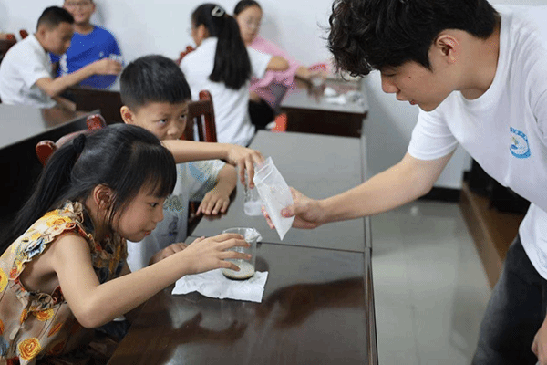 团委网7月11日消息(通讯员 肖敏 张哲哲 报道)为积极响应大学生“三下乡”社会实践活动号召,武昌理工学院第十九届“大手牵小手”硒望恩施·清源兴教志愿服务队于2025年7月11日在革塘坝社区开展了妙趣横生的碘钟反应特色课程。志愿者通过趣味化学实验,以实际行动践行“科普下乡、教育帮扶”的实践初心。