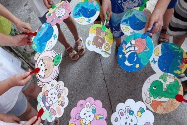 活动中,学生认真作画,他们追求细致,充分发挥想象力,依据采集卡上的色谱,在扇面上精准还原出颜色渐变的细节,同时还别出心裁,以细小笔刷蘸取颜料,在扇面上绘制出细致的图案,突破写实风格,在扇面一角添绘可爱的卡通意象,作品颜色层次丰富且过渡自然,将自然观察与艺术想象巧妙结合。多位学生的作品亮点突出,被精心悬挂于校园长廊,成为独特风景线。