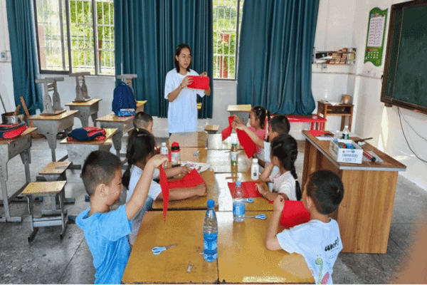 团委网7月21日消息(通讯员 王紫露 柯小倩 报道)为传承非物质文化遗产,激发青少年对传统手工艺的兴趣,武昌理工学院崇阳筑梦志愿服务队于7月21日在咸宁市港口乡洞泉小学开展非遗手工剪纸课。课程通过理论讲解、技巧示范与实践操作相结合的方式,让学生感受剪纸艺术的魅力,培能力与文化认同,助力非遗文化在青少年群体中传承。