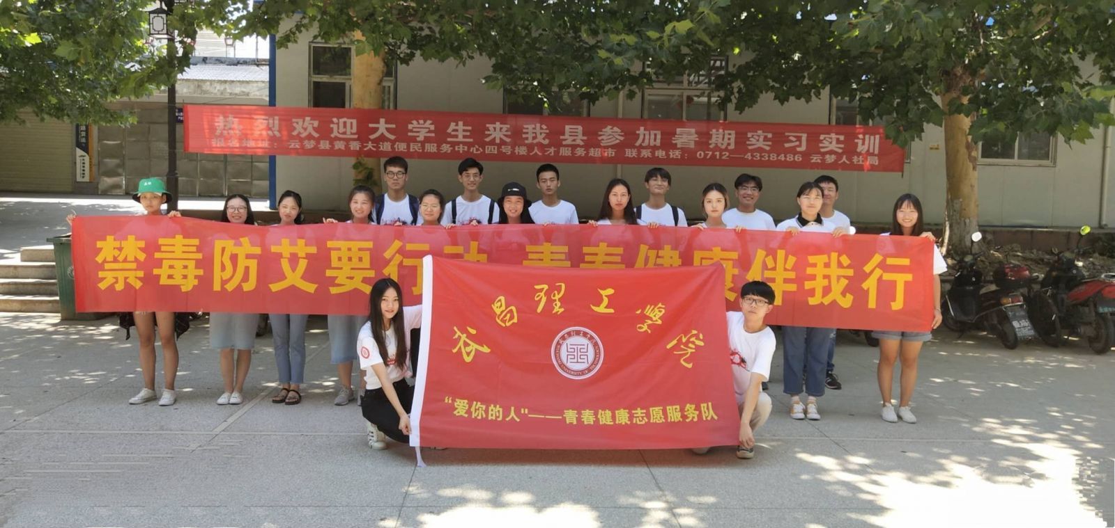 团委网7月15日消息 (记者 田佳丽 孟钰林 报道)暑期社会实践是青年学生了解社会和接触社会的重要时机。我校积极响应国家号召,组建了一支以“禁毒防艾”为主题的暑期社会实践云梦青春健康服务队,于7月15日赶赴孝感市云梦县开展一系列以“禁毒防艾要行动,青春健康伴我行”为主旨的志愿宣传活动。