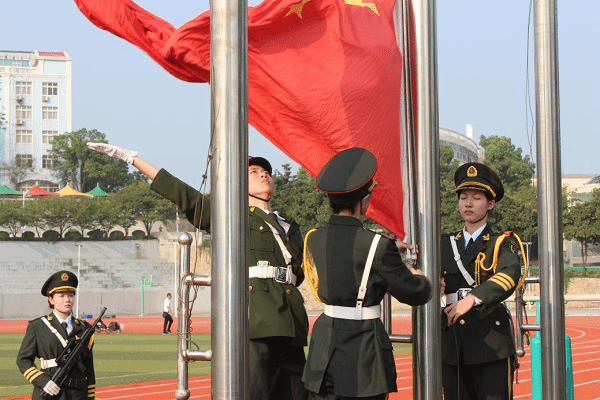 仪式在庄严的升旗活动中拉开帷幕。国旗护卫队步伐铿锵,护送五星红旗入场。全体师生肃立行注目礼,齐唱国歌。升旗仪式庄重肃穆,激发了同学们的爱国热情。